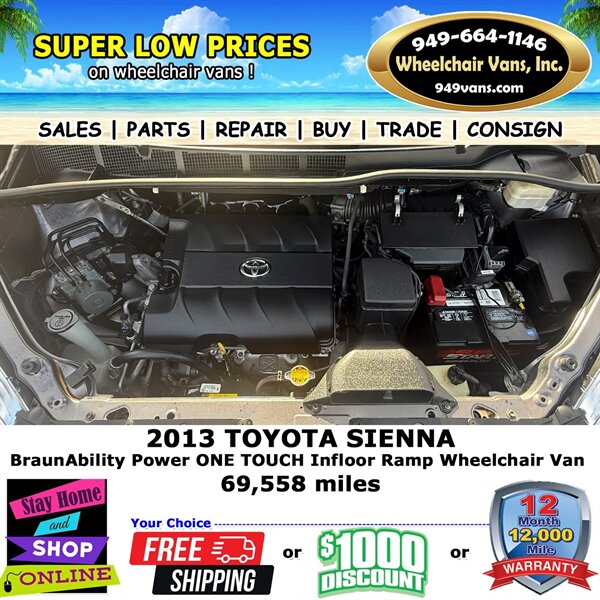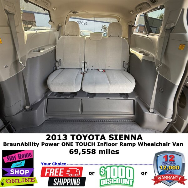 2013 Toyota Sienna BraunAbility Power ONE TOUCH Infloor Ramp Side Loading Wheelchair Van