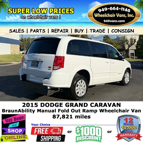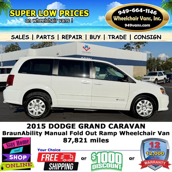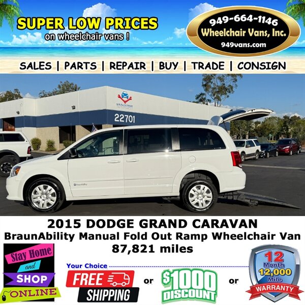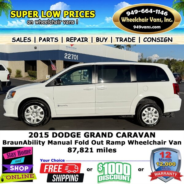 2015 Dodge Grand Caravan BraunAbility Manual Fold Out Ramp Rear Loading Wheelchair Van