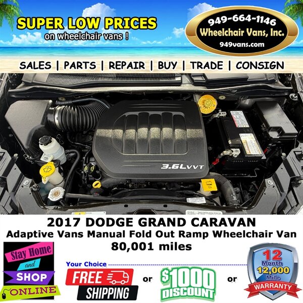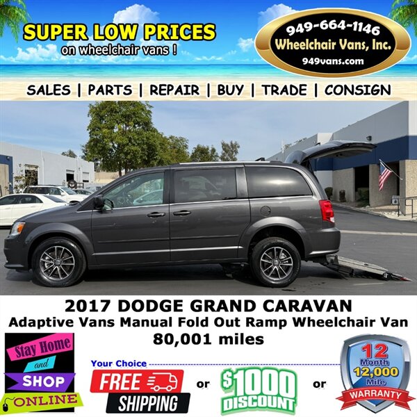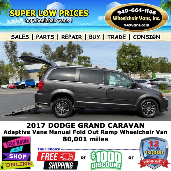 2017 Dodge Grand Caravan SXT Adaptive Vans Manual Fold Out Ramp Rear Loading Wheelchair Van