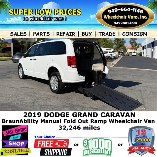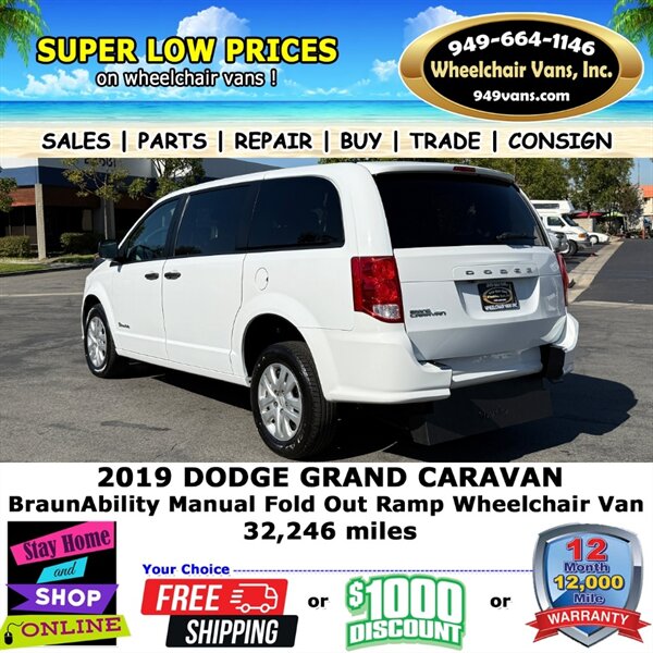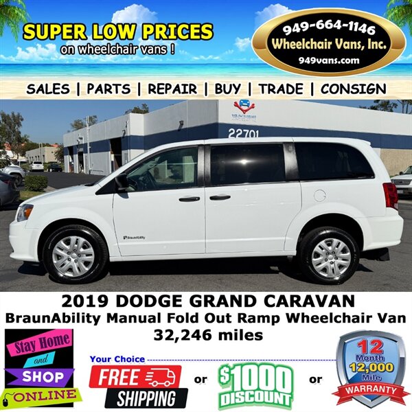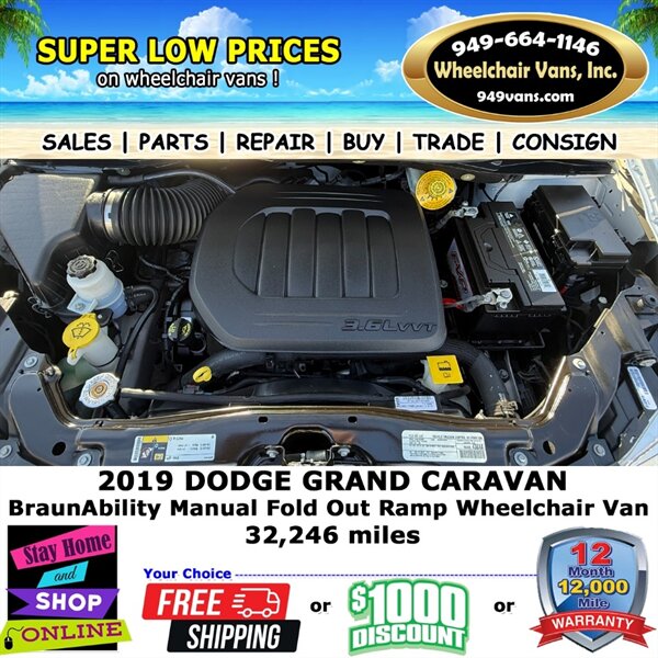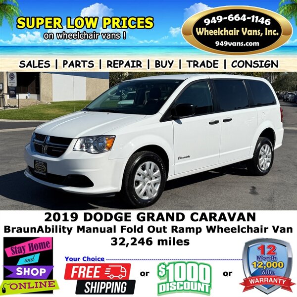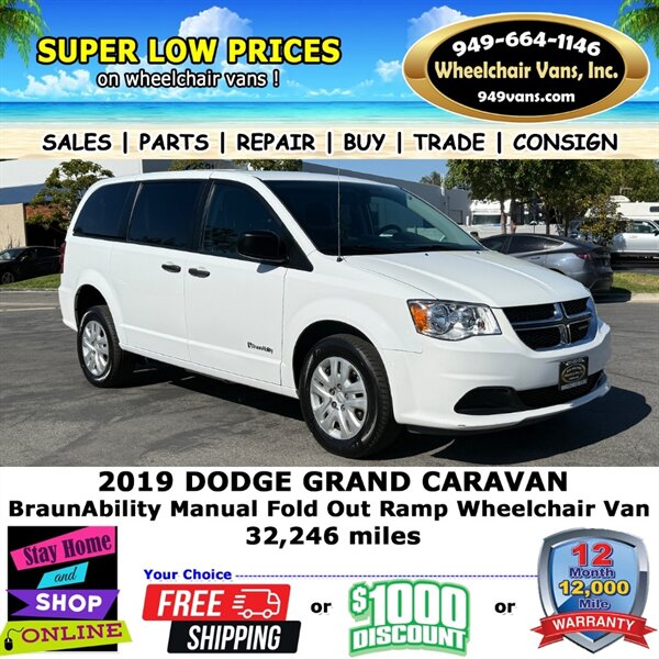 2019 Dodge Grand Caravan SE BraunAbility Manual Fold Out Ramp Rear Loading Wheelchair Van